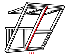 Zwei obere Fenster mit Scharnierpunkt an der Oberseite können stufenlos bis zu 45° in Bezug auf die Dachneigung verstellt werden. Die Bedienung der oberen Fenster erfolgt über einen Bediengriff an der Unterseite des Flügels.
